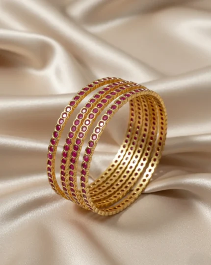 Ruby Gold Circle Stone Bangles