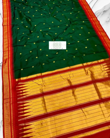 Shahi Green & Red Half Silk Irkal Paithani Saree with Temple Border