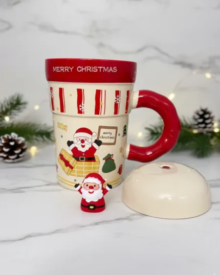 Santa’s Peppermint Party Ceramic Mug with Matching Hat Lid