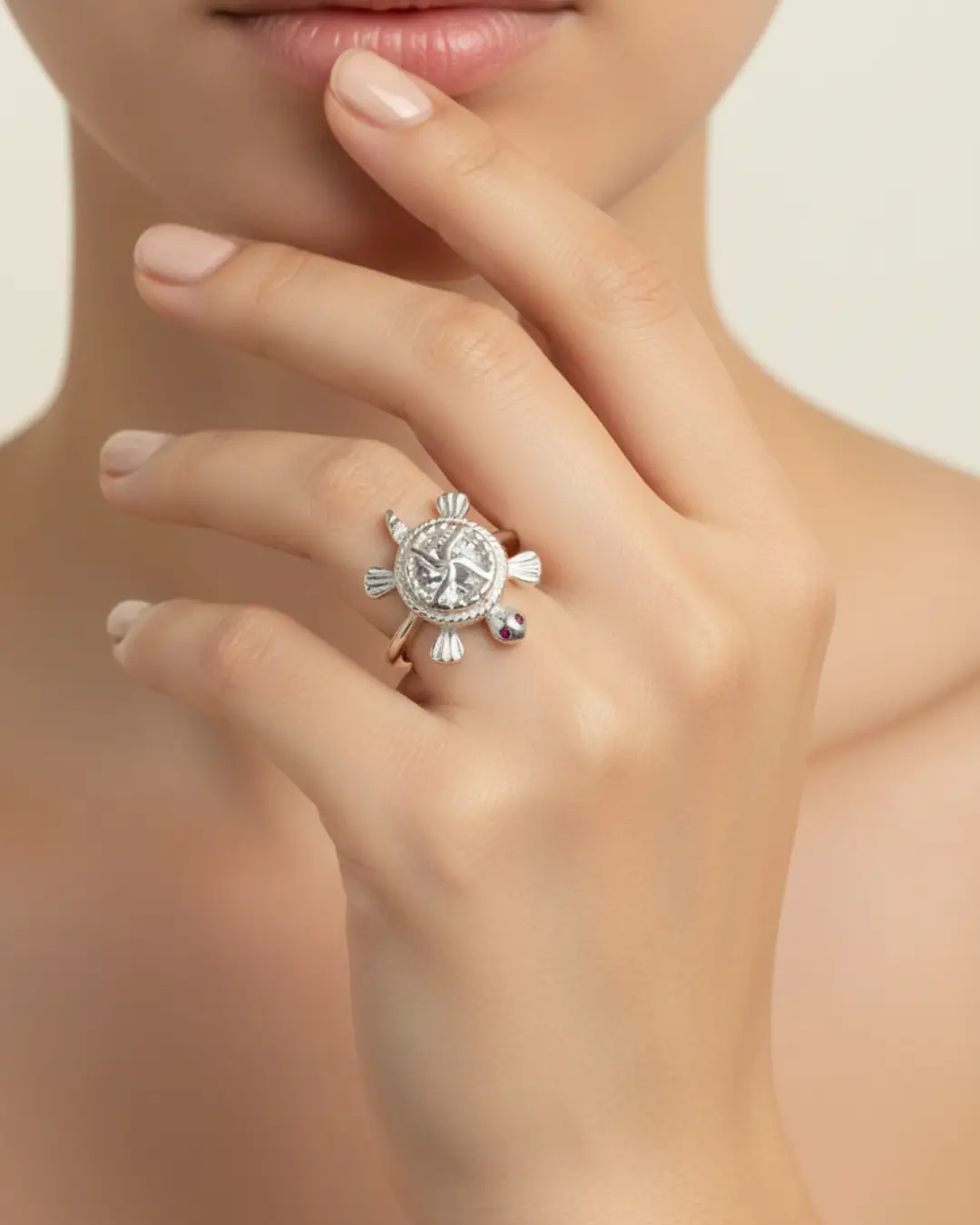 Celebrate the symbol of wisdom, protection, and endurance with our meticulously crafted 925 Sterling Silver Turtle Ring. Designed for the modern woman who values meaningful jewelry, this piece combines traditional motifs with a brilliant contemporary finish.