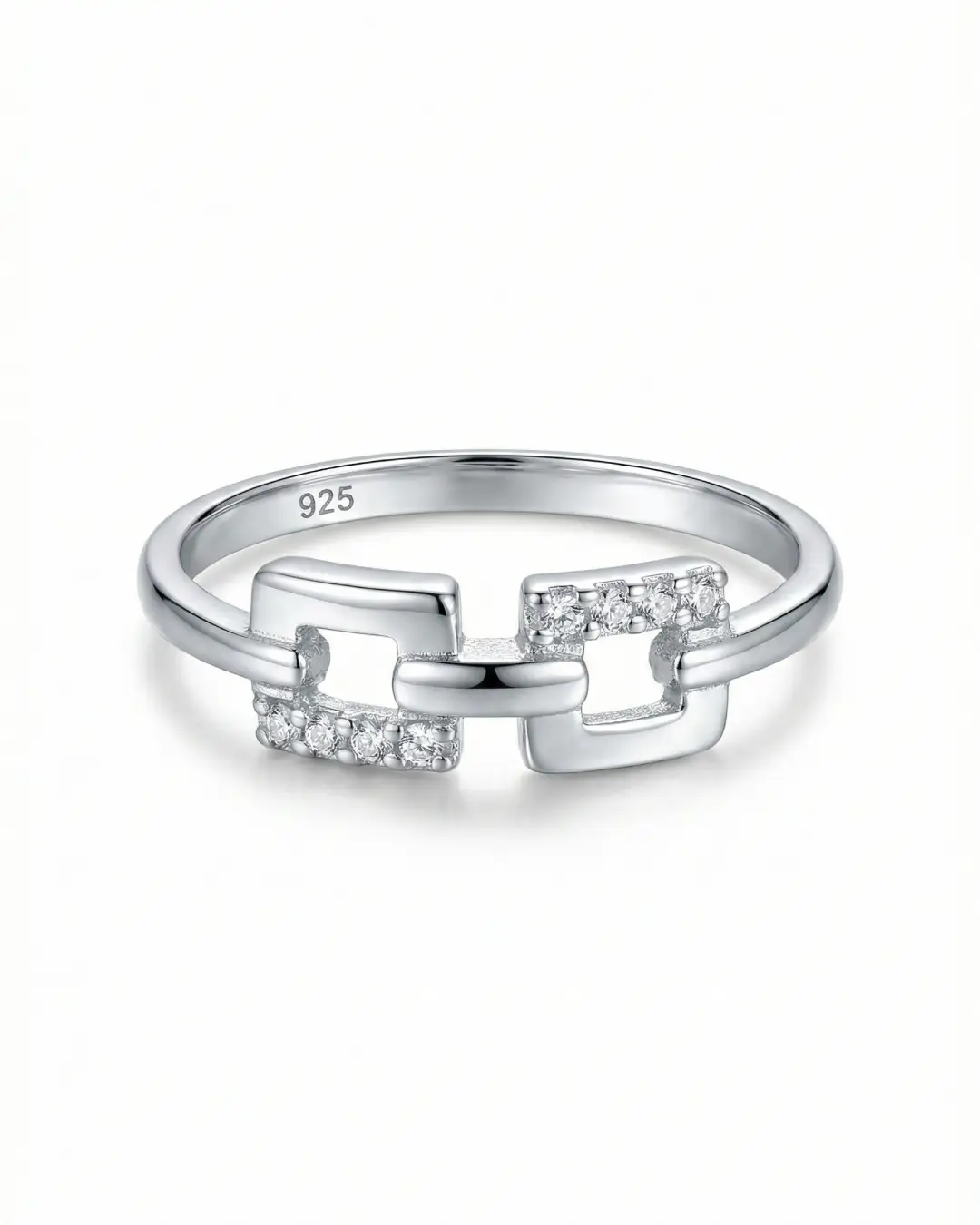 Elevate your everyday stack with the Luxe Link Ring, a perfect blend of industrial edge and modern elegance. This 925 Sterling Silver piece features a chic chain-link design, where polished silver rectangles interlock seamlessly with sparkling pave-set crystal links. The openwork silhouette creates a light, airy feel on the finger, making it comfortable for all-day wear while delivering a high-end, editorial look.