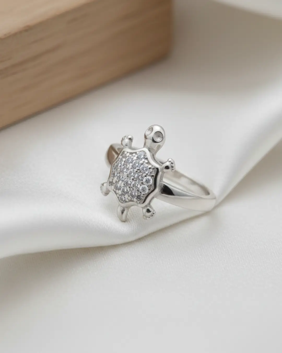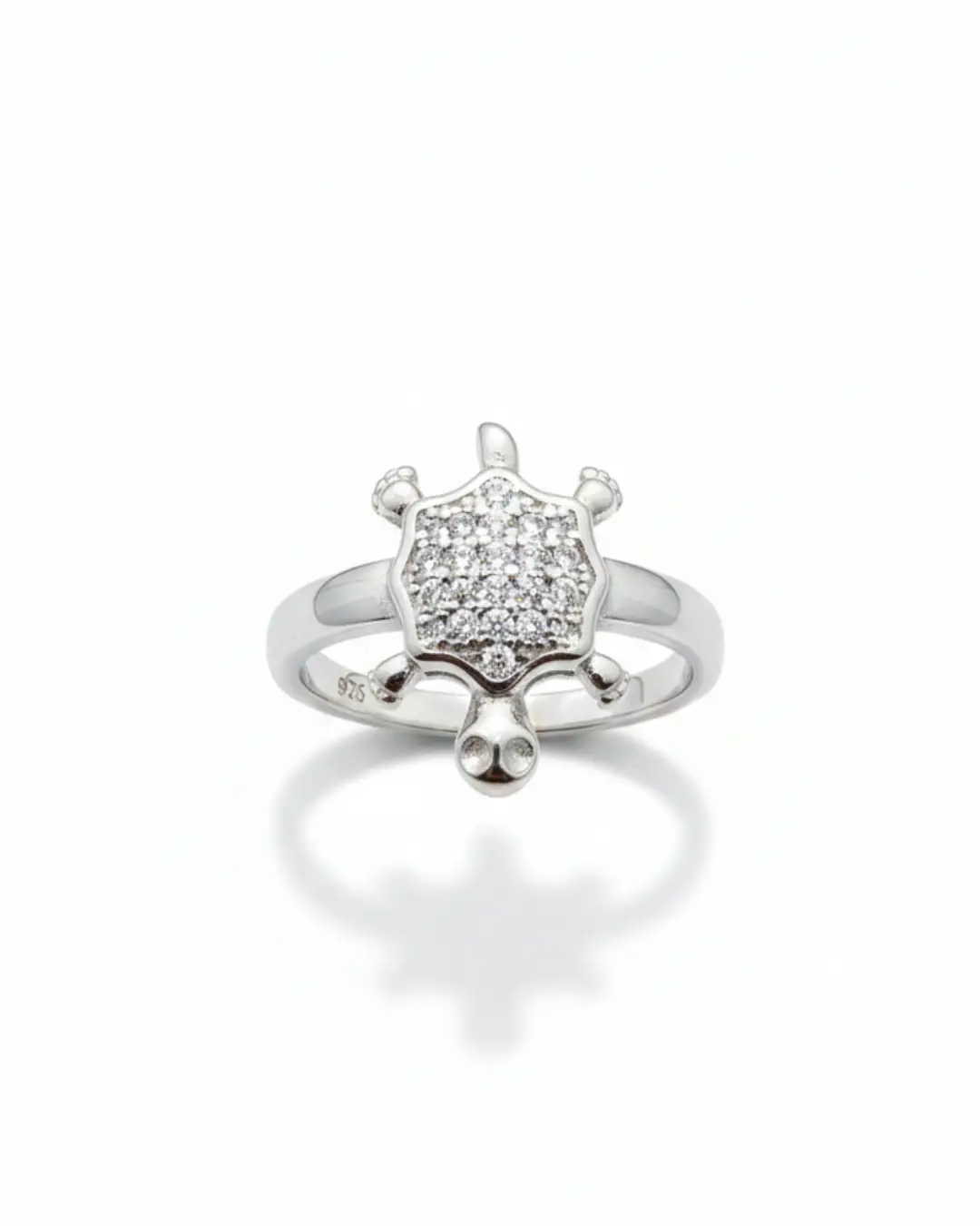 Timeless Elegance in Every Detail Elevate your everyday style with a piece that radiates grace and positive energy. This 925 sterling silver ring showcases a classic tortoise silhouette, with its shell entirely adorned in brilliant-cut cubic zirconia for a sophisticated, high-end editorial look.