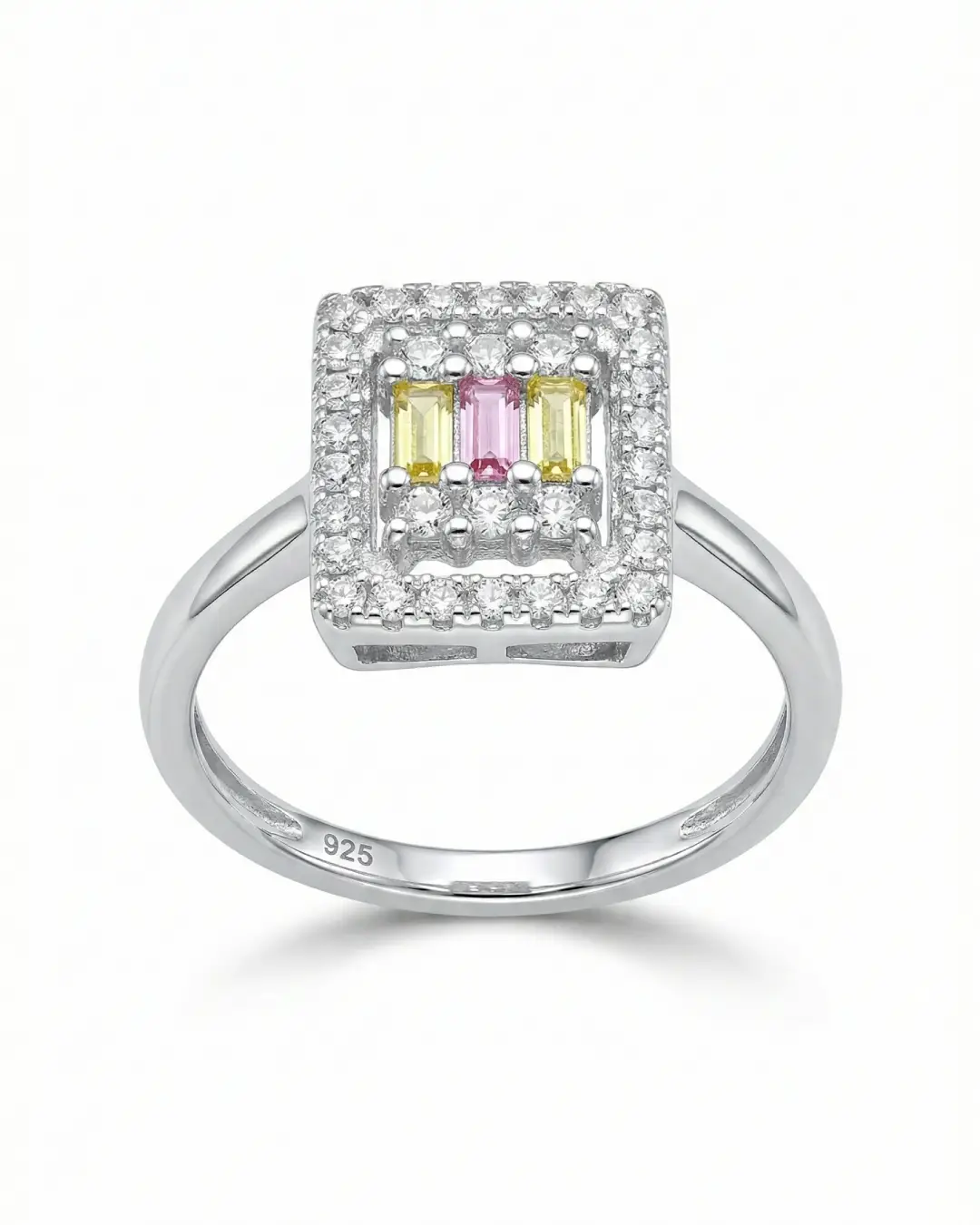 925 Silver Tricolor Baguette Halo Ring