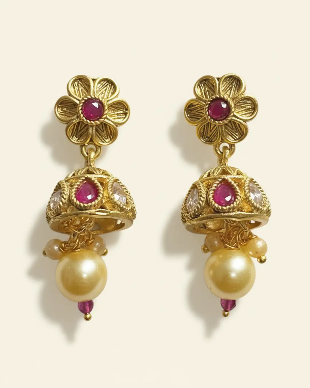 VINTAGE PEARL PETAL 18K GOLD PLATED EARRINGS