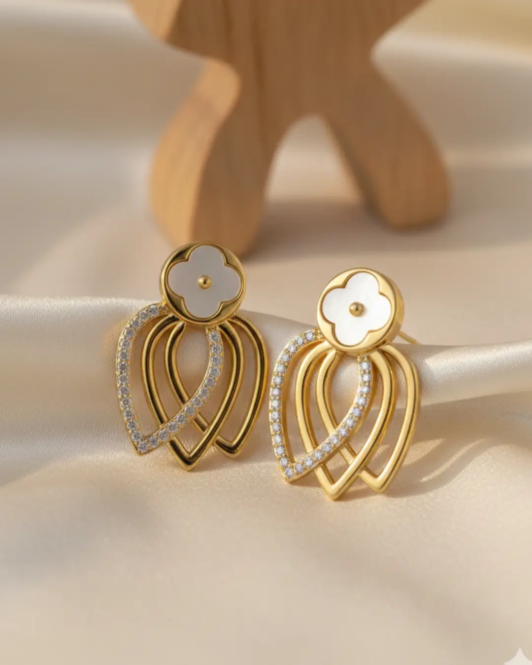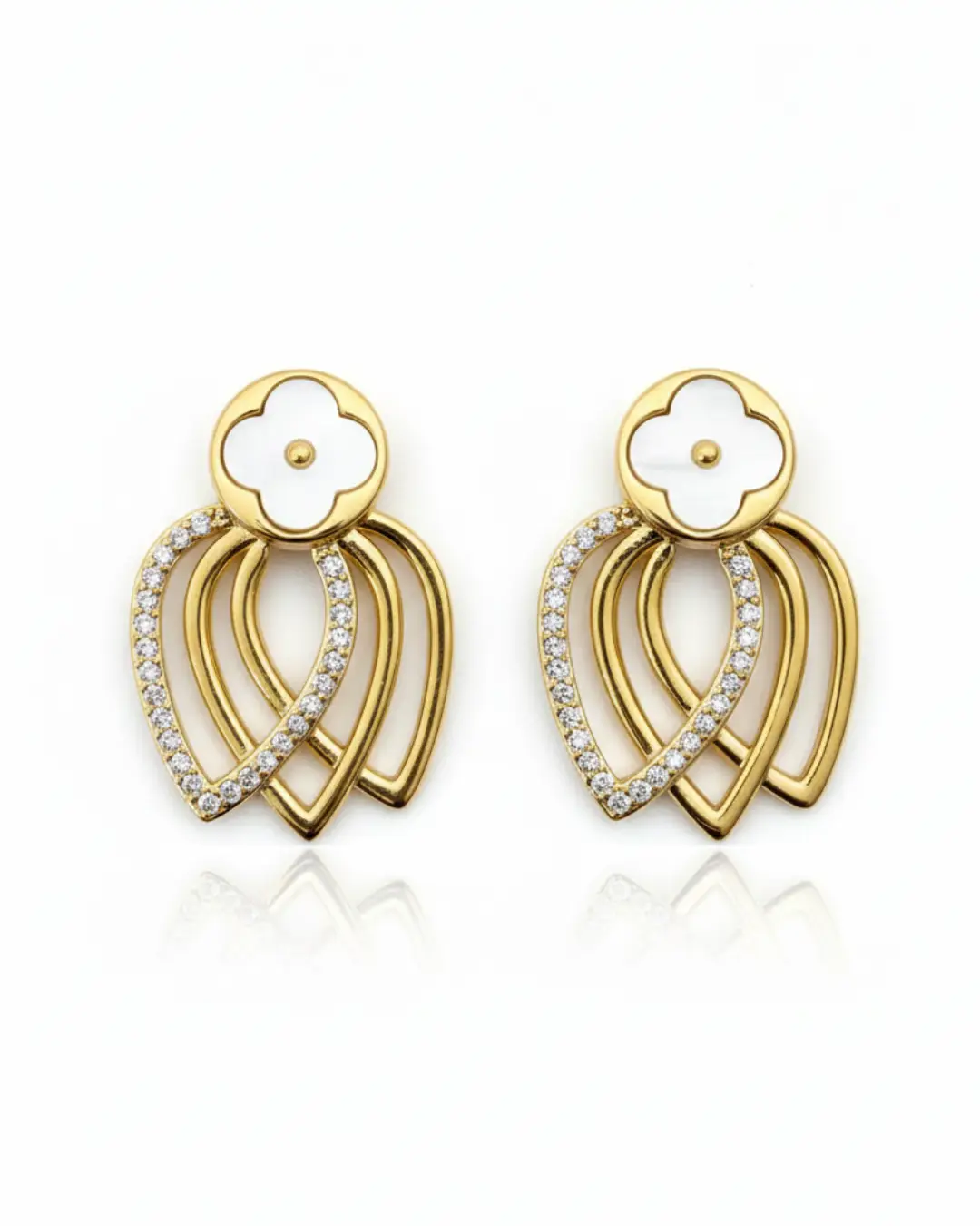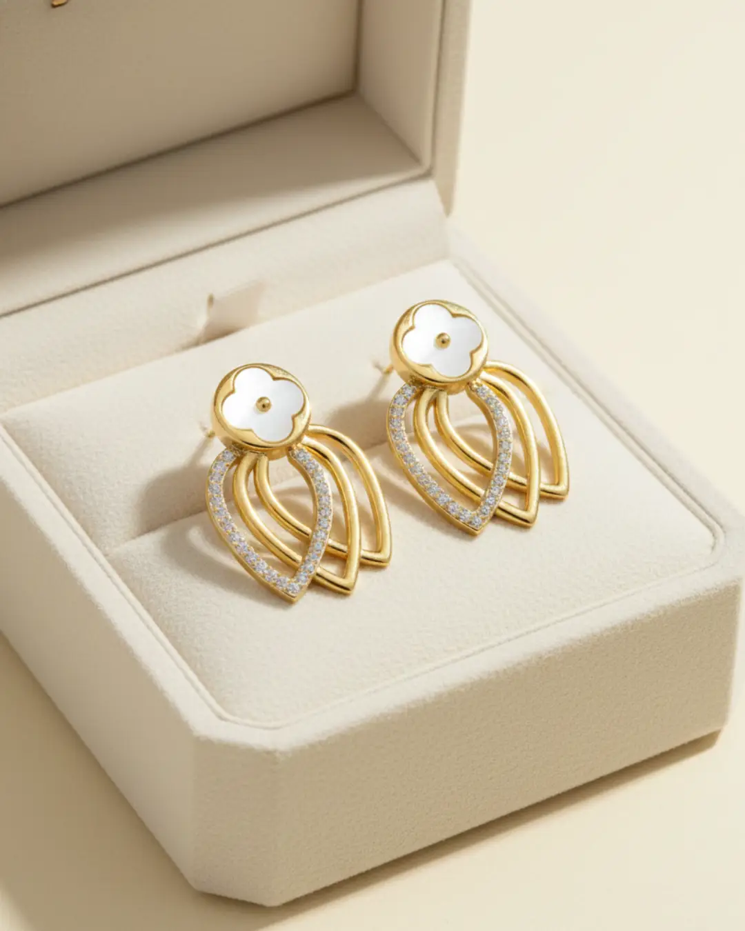 Elevate your jewelry collection with these exquisite Clover Leaf Drop Earrings, a perfect blend of timeless symbolism and contemporary flair. Designed for the woman who appreciates intricate craftsmanship, these earrings feature a delicate white clover motif set atop a cascading, architectural drop design.