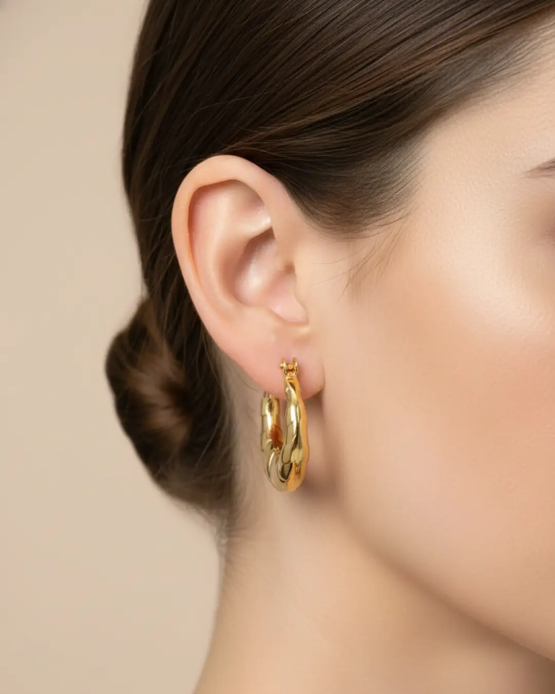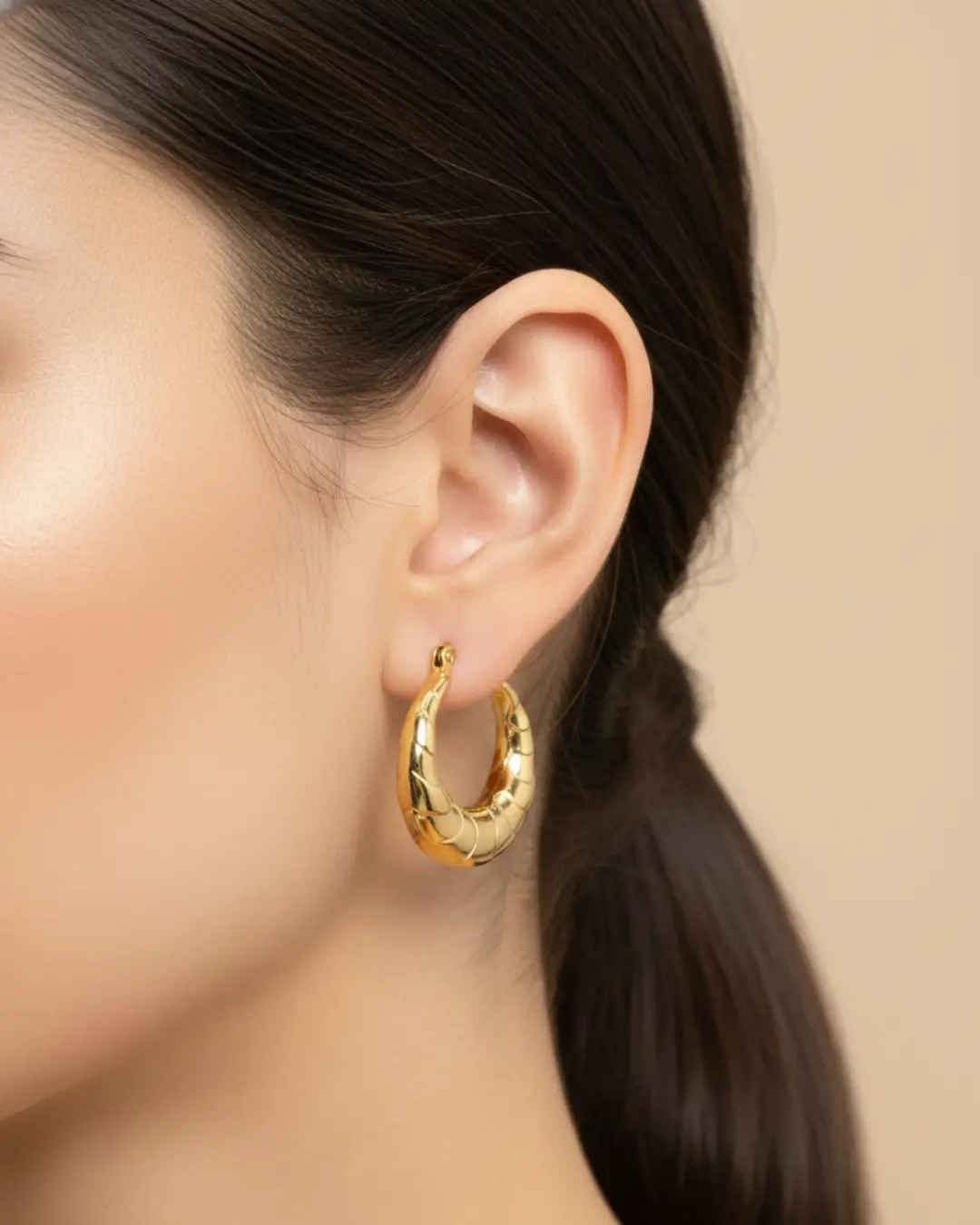 Elevate your everyday jewelry collection with our Signature Croissant Dome Hoops. Inspired by the effortless chic of Parisian style, these earrings feature a distinct ribbed, tiered texture that catches the light from every angle.