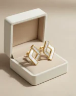 Capture a look of sophisticated modernity with these unique Geometric Rhombus Studs. Blending architectural lines with timeless materials, these earrings are designed for those who seek a balance of classic luster and contemporary edge.