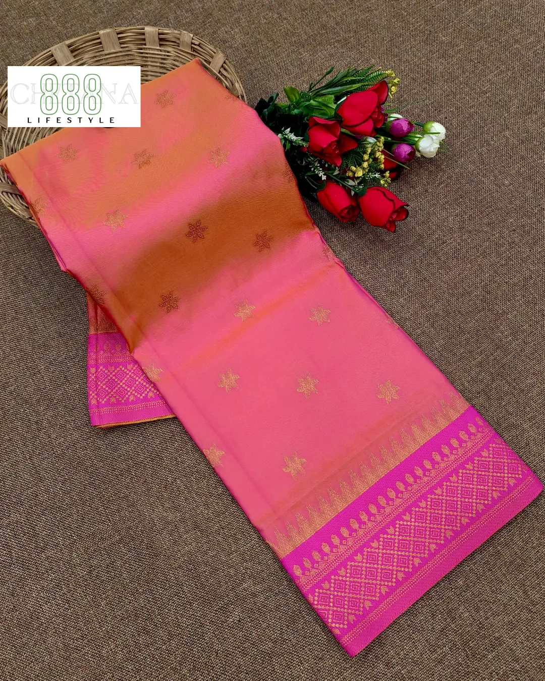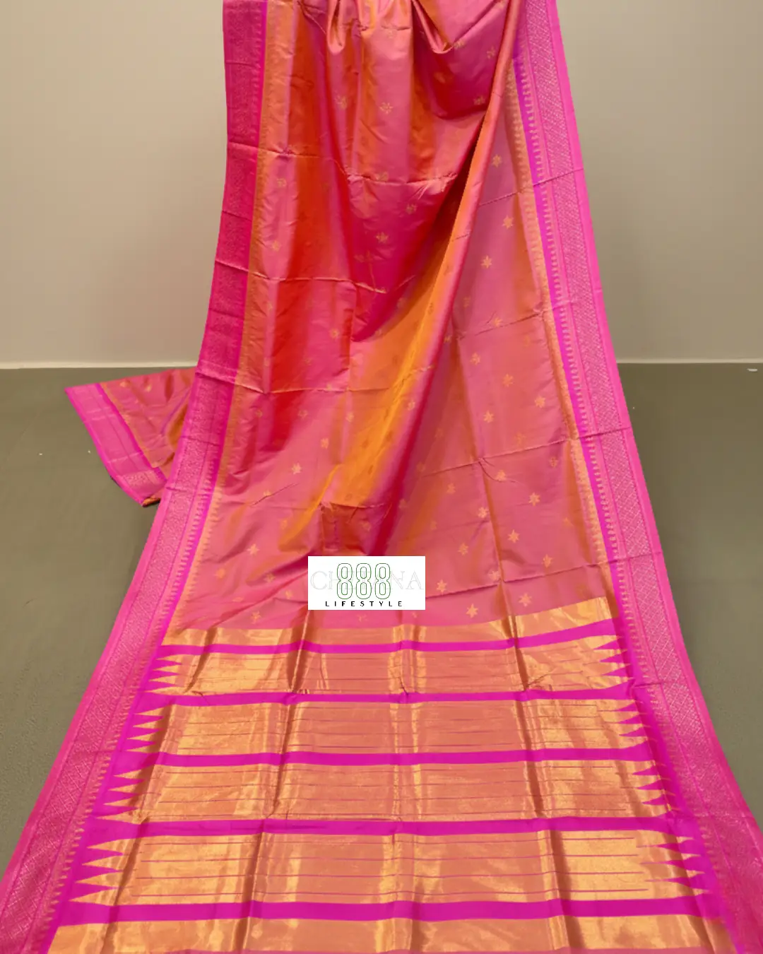 Dual Tone Onion Pink with Rich Gold Border Peacock Pallu Muniya Paithani Saree