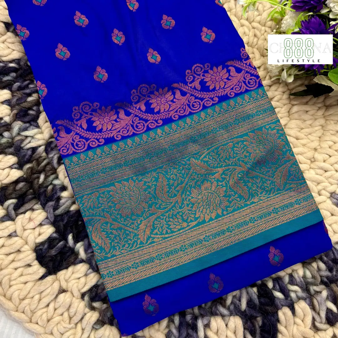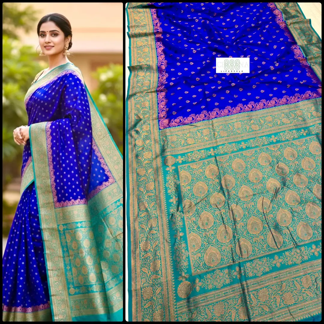 Electric Blue with Teal Zari Dual Tone Silk Kanjivaram Border Paithani Saree