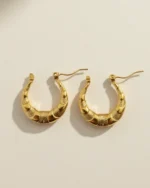 Ribbed U-Shape Huggie Hoops