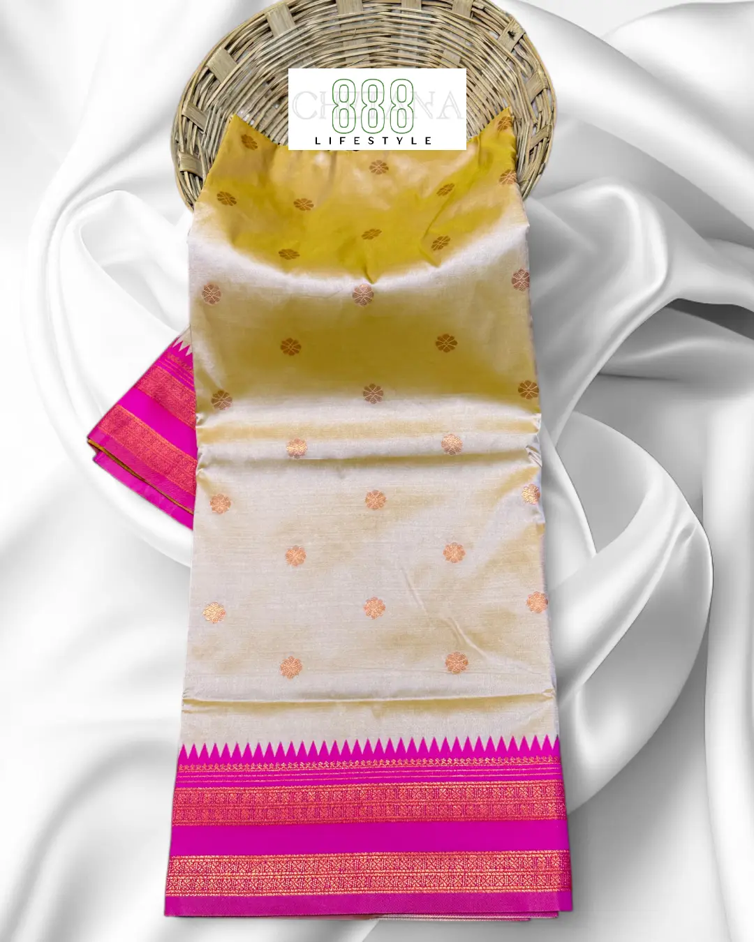 Golden Beige & Magenta Traditional Half Silk Narayan Peth Paithani Saree