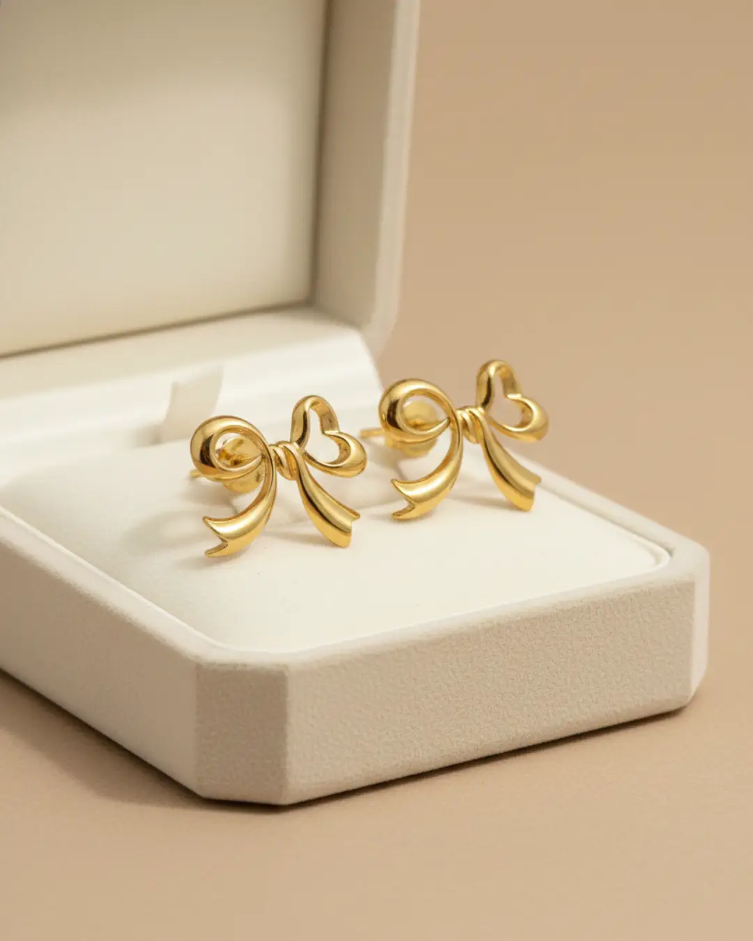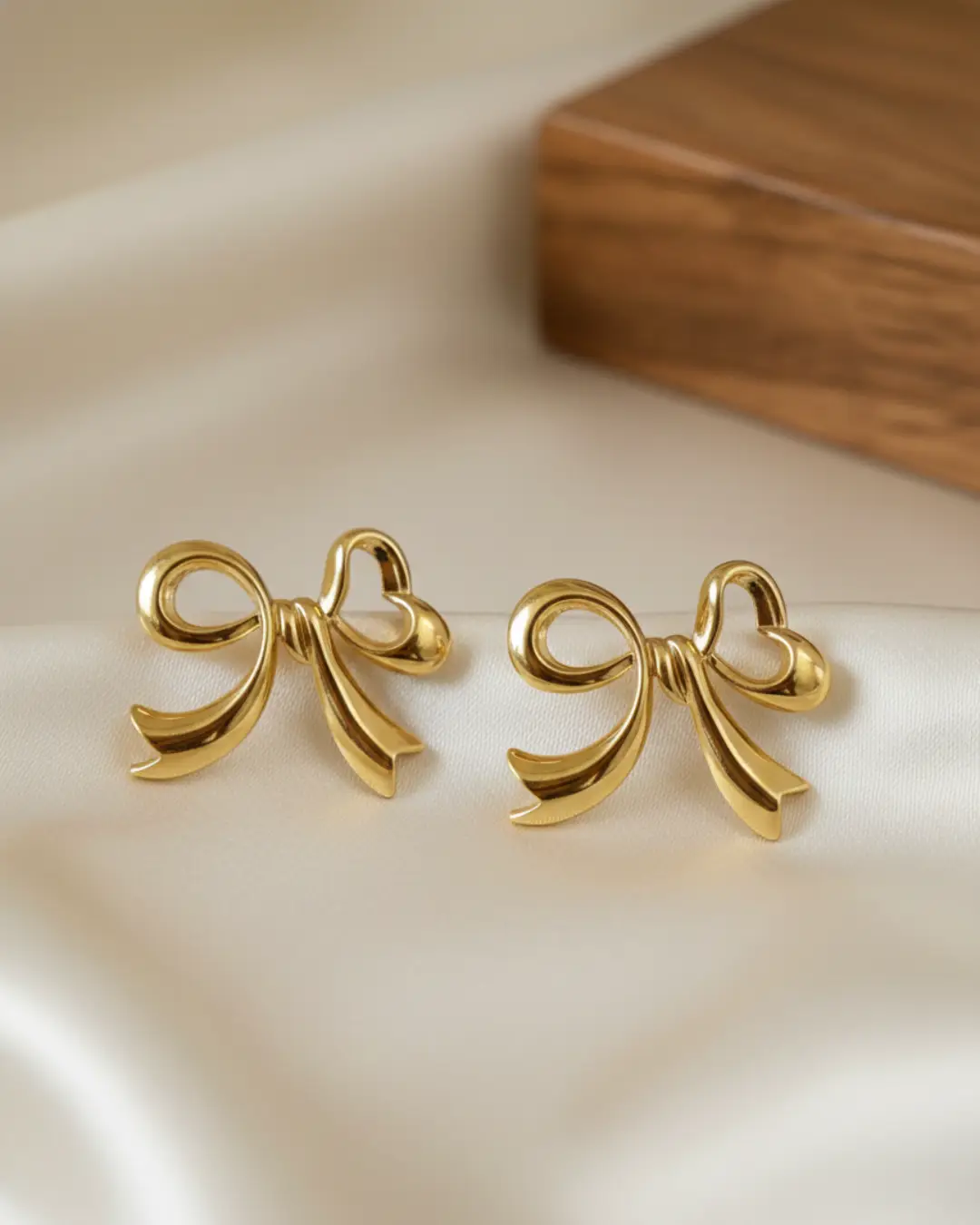 Embrace the charm of femininity with our Golden Muse Ribbon Bow Studs. These earrings feature a sophisticated, fluid design that captures the movement of a hand-tied silk ribbon in solid metal. With a high-polish mirror finish, they catch the light beautifully, adding a luminous glow to your profile.