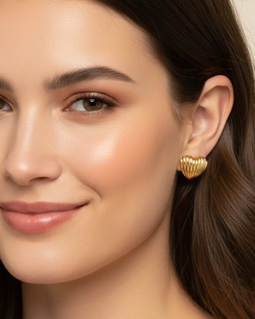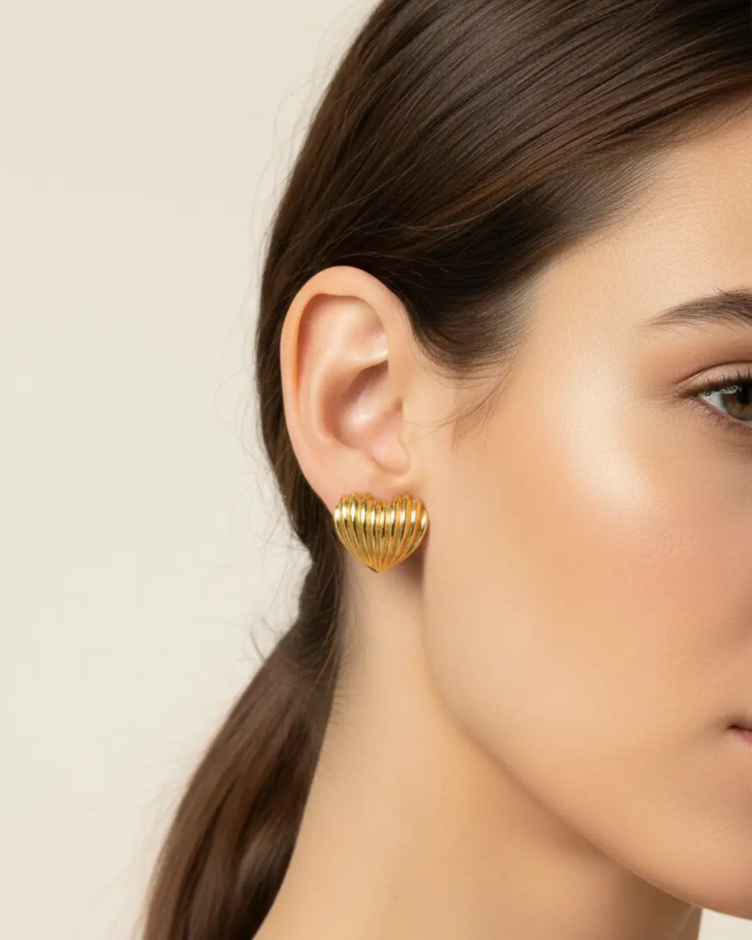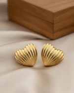 Elevate your everyday elegance with these beautifully crafted heart earrings. Designed with a deep, architectural ribbing that mimics the natural beauty of a seashell, these studs catch the light from every angle. The high-polish gold finish provides a warm, luxurious glow, perfect for adding a touch of “quiet luxury” to your ensemble.