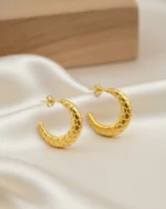 Be the first to review “Honeycomb Crescent Gold Hoops” Cancel reply