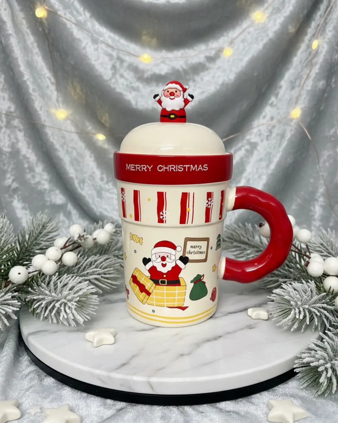 Festive 3D Design: The mug features a unique ceramic lid topped with a cheerful, miniature Santa Claus figurine to keep your drinks hot and your spirits high.