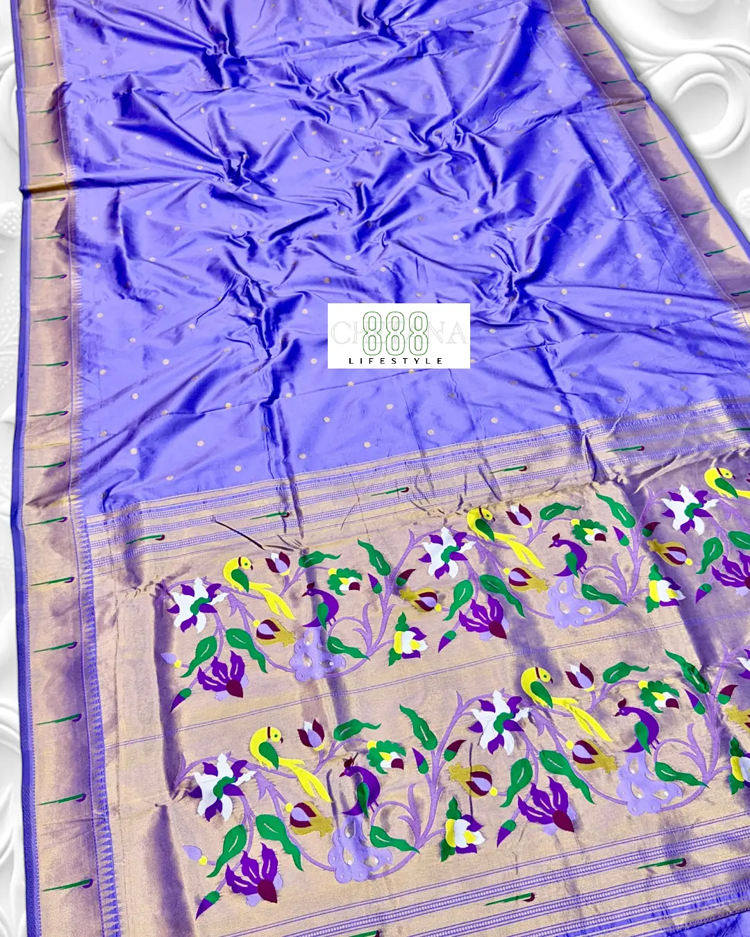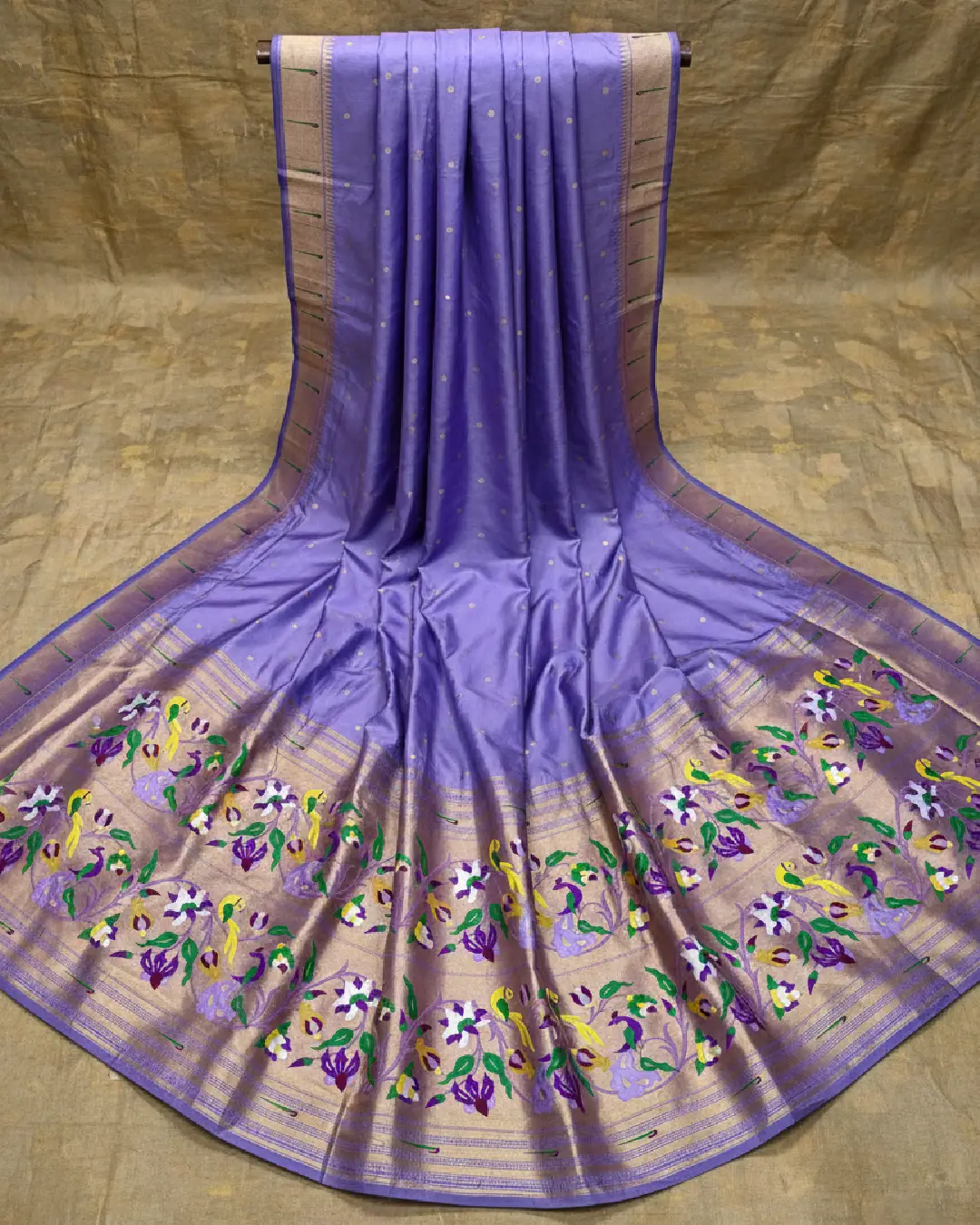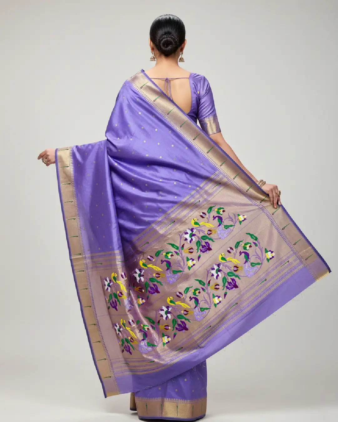 Lavender with Gold Muniya Border Peacock Pallu Paithani Saree