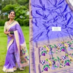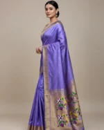 Be the first to review “Lavender with Gold Muniya Border Peacock Pallu Paithani Saree” Cancel reply