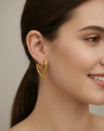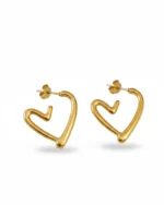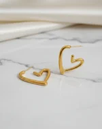 Fall in love with the sculptural beauty of the Molten Heart Hoops. Moving away from traditional rigid shapes, these earrings feature a fluid, hand-drawn heart silhouette that appears to “float” beneath the earlobe. The organic, slightly irregular lines give them a bespoke, artisanal feel that stands out from standard jewelry.