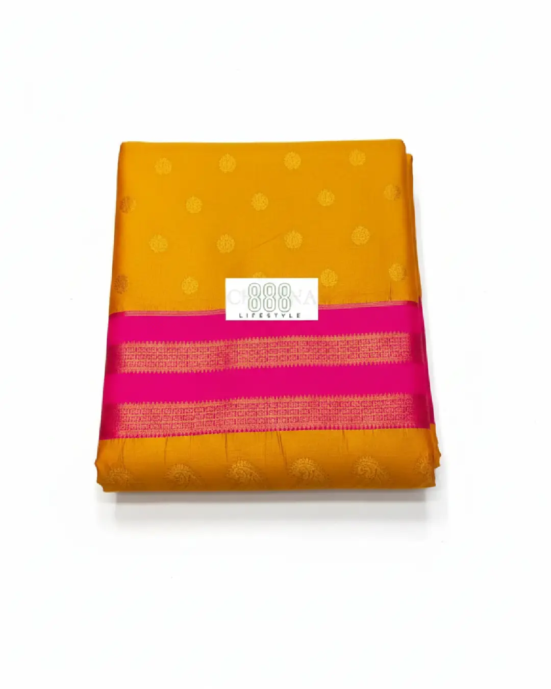 • Luminous Color Palette: The body features a brilliant Mustard Yellow that radiates warmth, beautifully contrasted by a bold Rani Pink border and pallu.