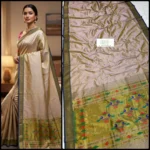 This masterpiece combines the luster of silk blends with the intricate artistry of traditional weaving, making it a perfect choice for weddings, festivals, and grand celebrations.