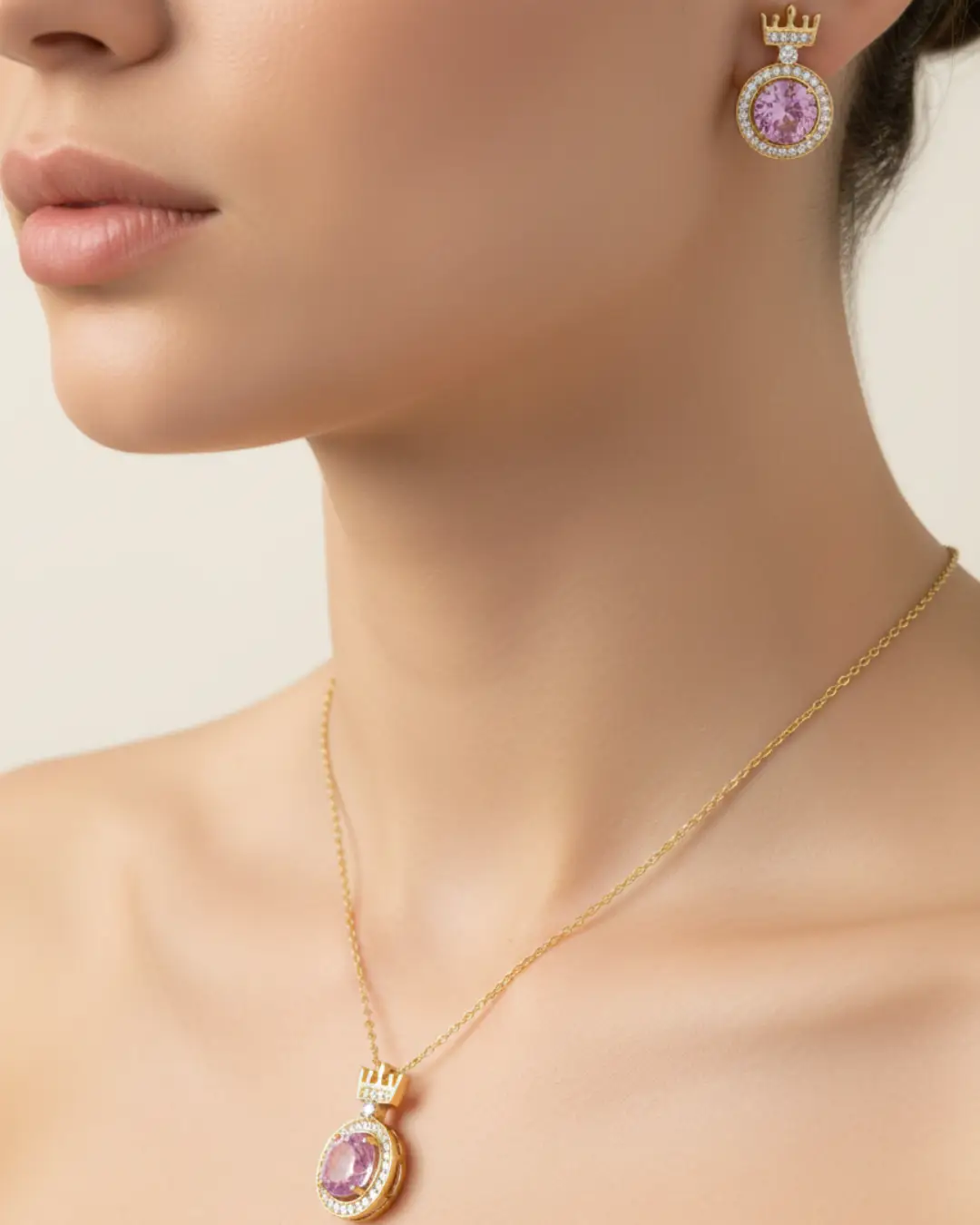 Pink Crown Duo Necklace