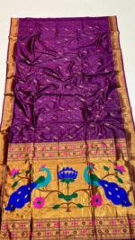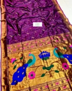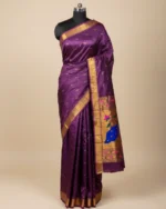 Be the first to review “Premium Katan Silk – Royal Purple with Traditional Peacock Pallu Tejaswi Muniya Paithani Saree” Cancel reply