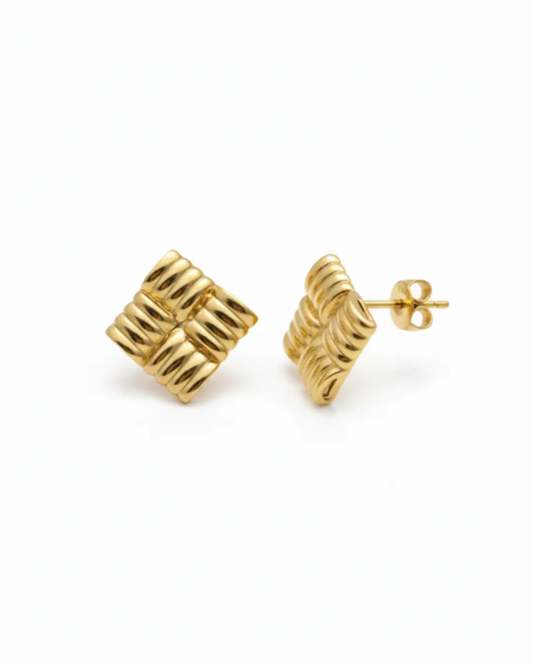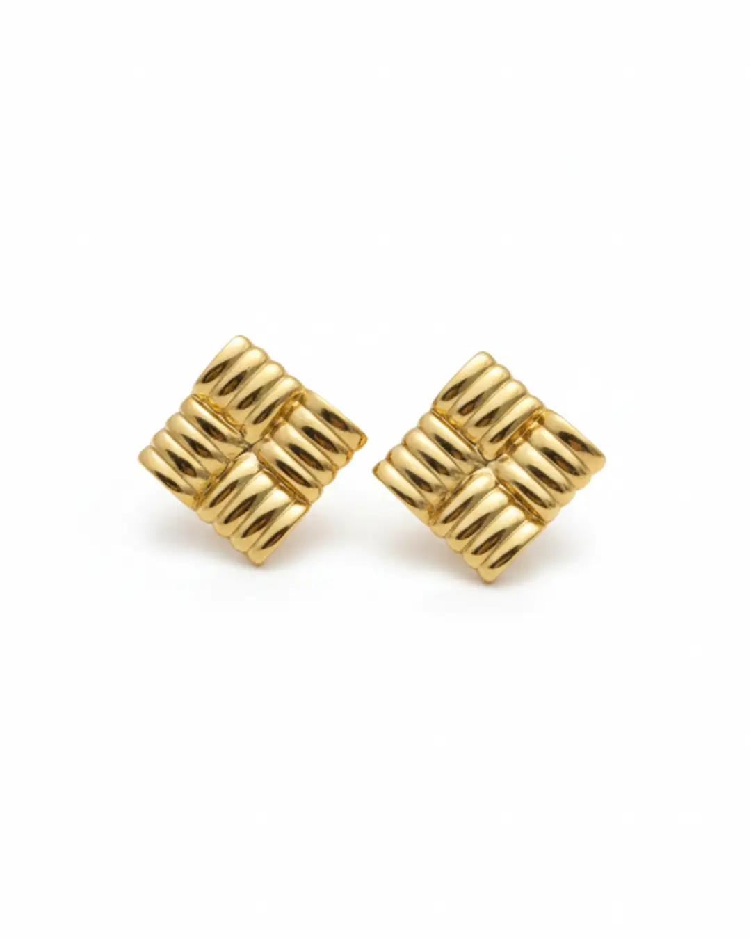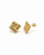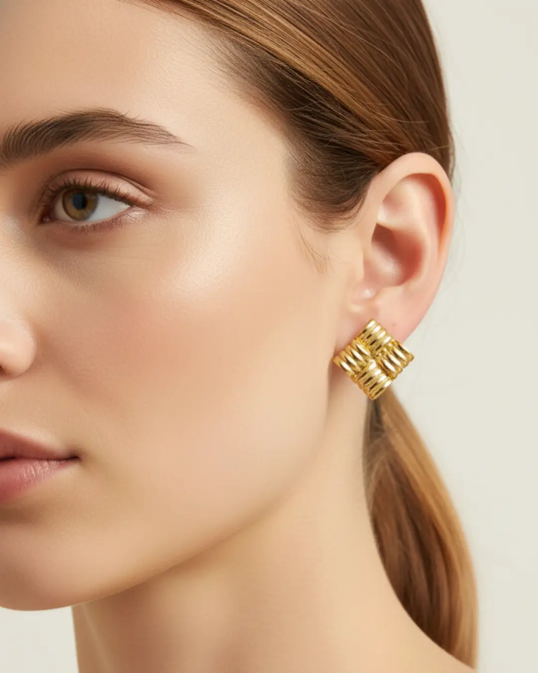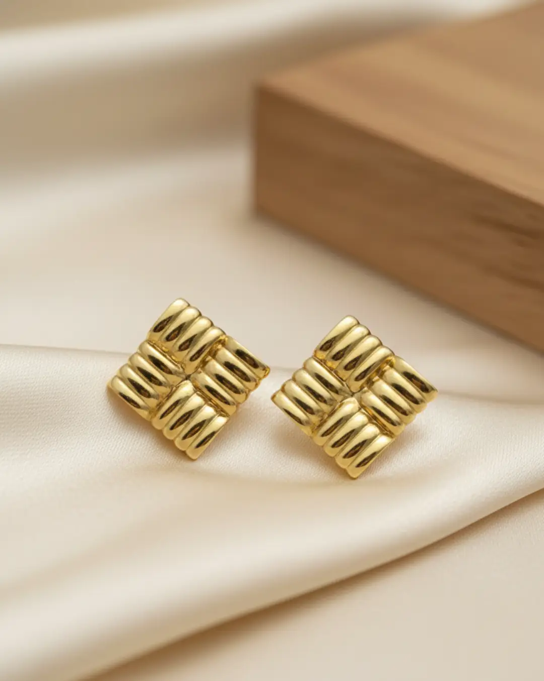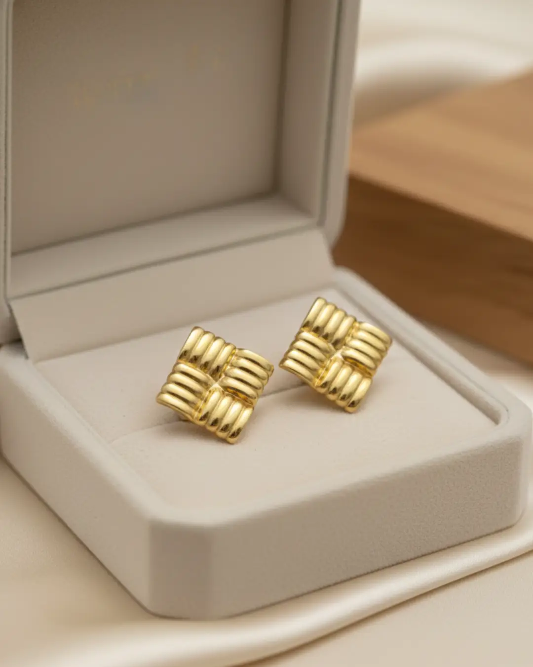 Elevate your everyday style with these exquisitely crafted Ribbed Square Stud Earrings. Blending architectural precision with a soft, “pillowy” texture, these studs offer a modern twist on a classic silhouette. The high-polish gold finish catches the light from every angle, making them the perfect statement piece for both professional settings and evening soirées.