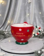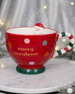 Hidden Surprise: A tiny, handcrafted ceramic Santa Claus peeks out from the inner rim, greeting you with every sip.