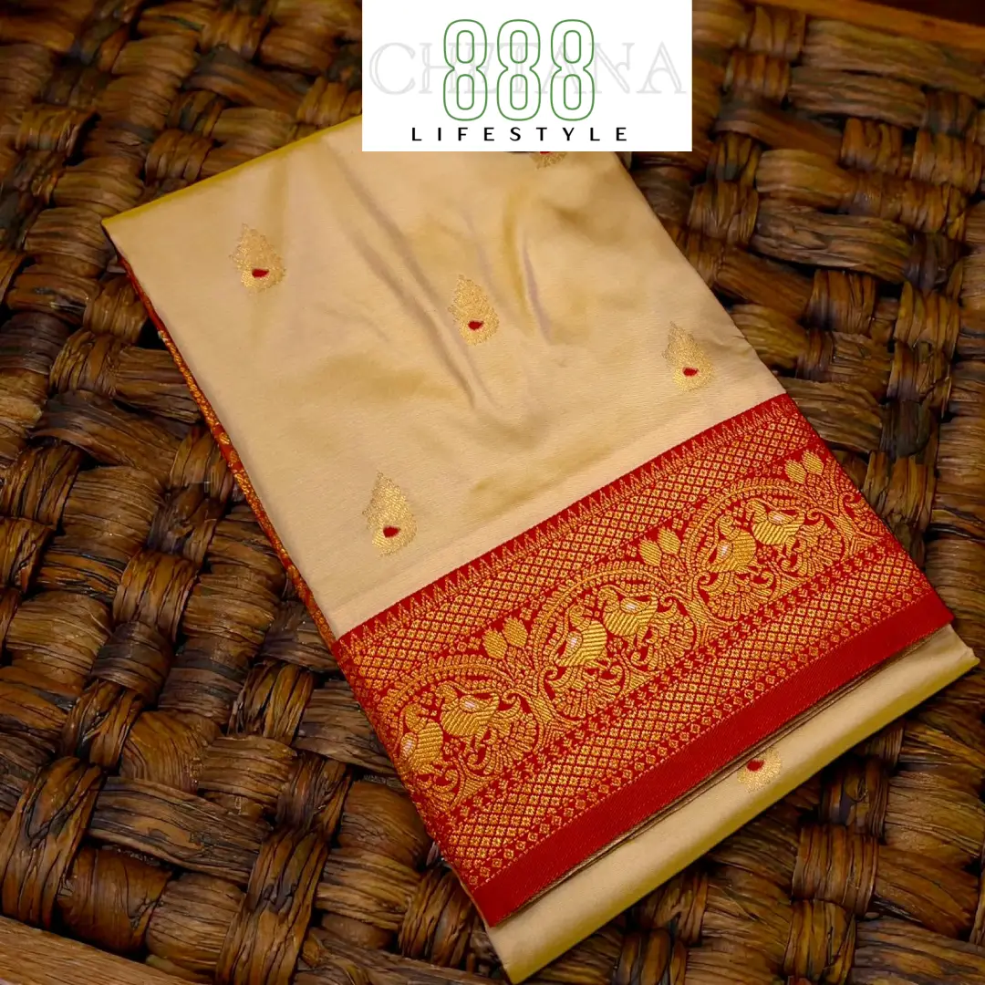 Fabric: Premium Katan Silk material that offers a soft, luxurious feel reminiscent of pure silk with a graceful drape.
