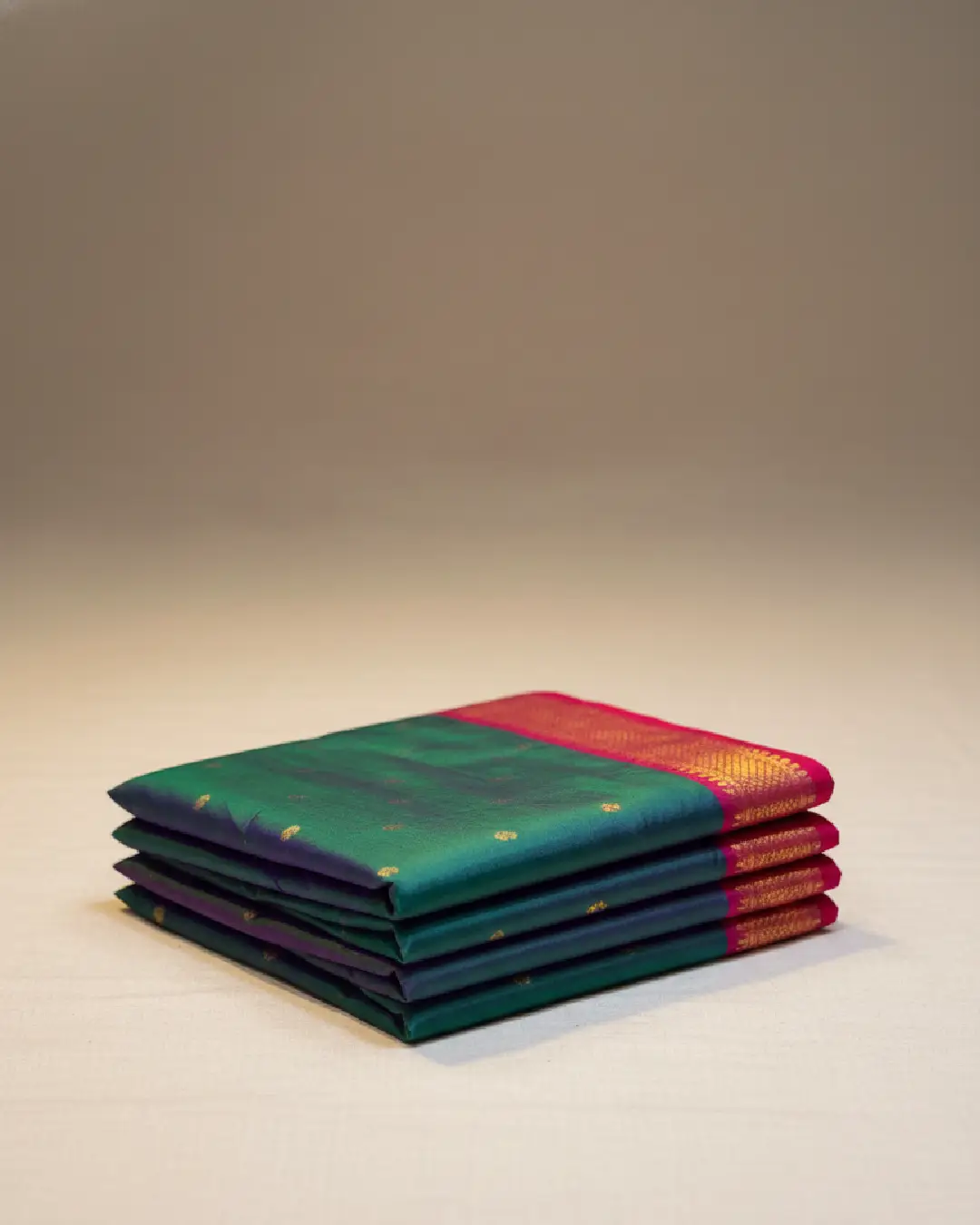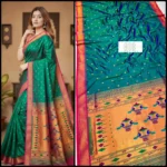 Bottle Green with Gold Border-Semi Mor Popat Brocade Paithani Saree