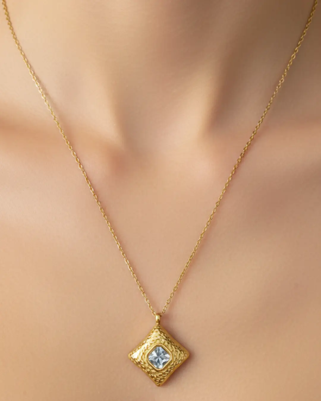 Textured Gold Diamond Pendant Necklace