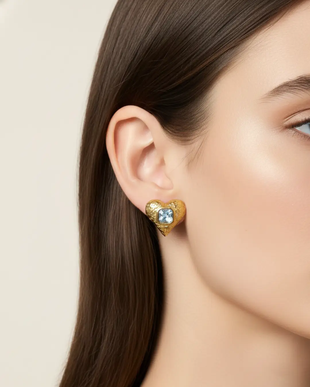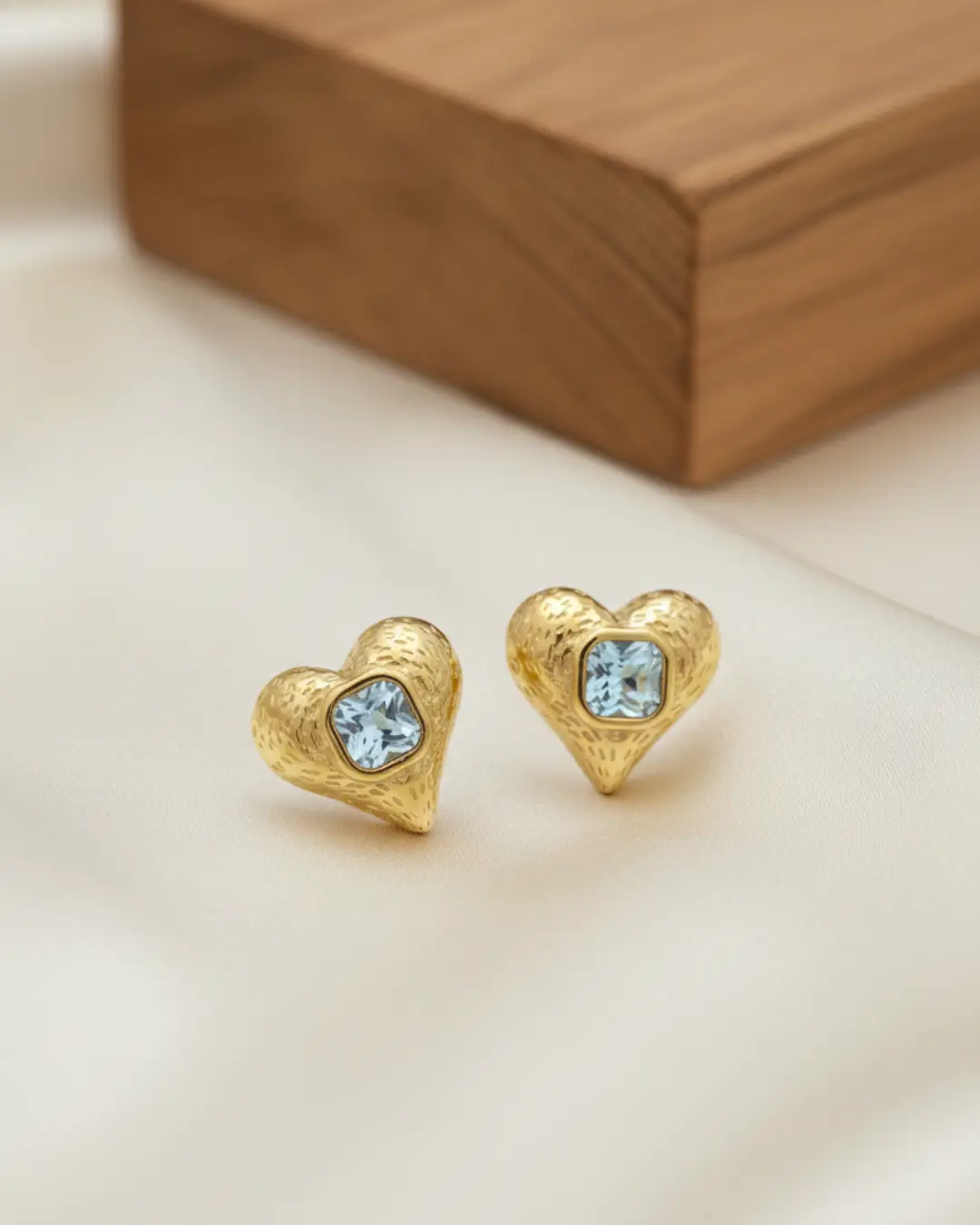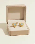 At the center lies a captivating square-cut icy blue crystal, bezel-set to catch the light with every movement. These studs are designed for those who love “romantacy” aesthetics—blending the bold strength of gold with the soft, ethereal glow of a winter sky.