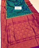 The Blouse: Comes with an exclusive contrast blouse piece to perfectly complement the rich tones of the saree.