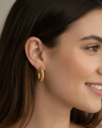 The voluminous, hollow design ensures a bold presence without the weight, making them comfortable enough for all-day wear. Whether you’re pairing them with a crisp white shirt for the office or a sleek slip dress for the evening, these hoops add an effortless touch of “second-skin” luxury and timeless charm to any outfit.